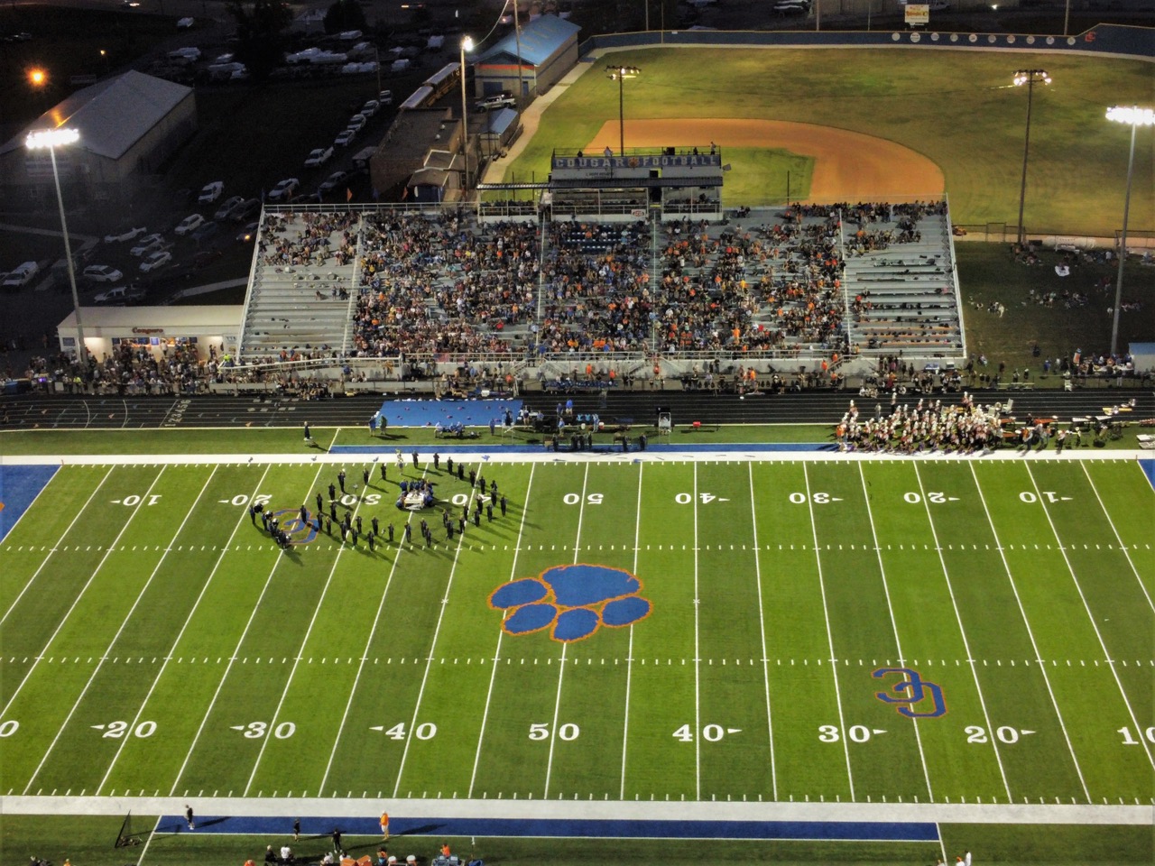 TOP PHOTO: WLAF’s Charlie Hutson shares this look of the Campbell High Marching Band from way up above Reynolds Field at Friday’s home game with Clinton.