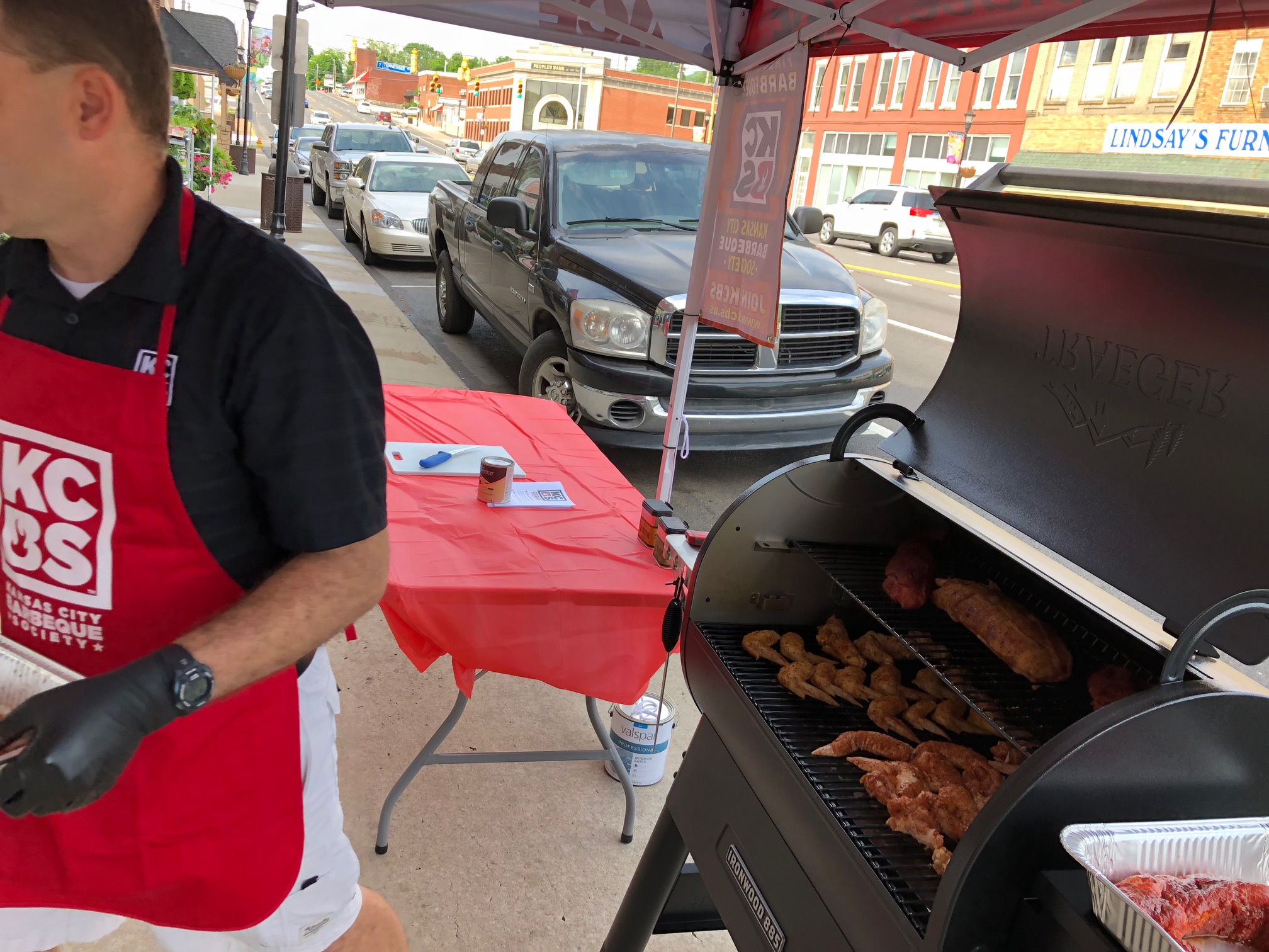 TOP PHOTO:  Pit Master Hutch Swafford served up chicken wings and tenderloin on Saturday at Smith Hardware.