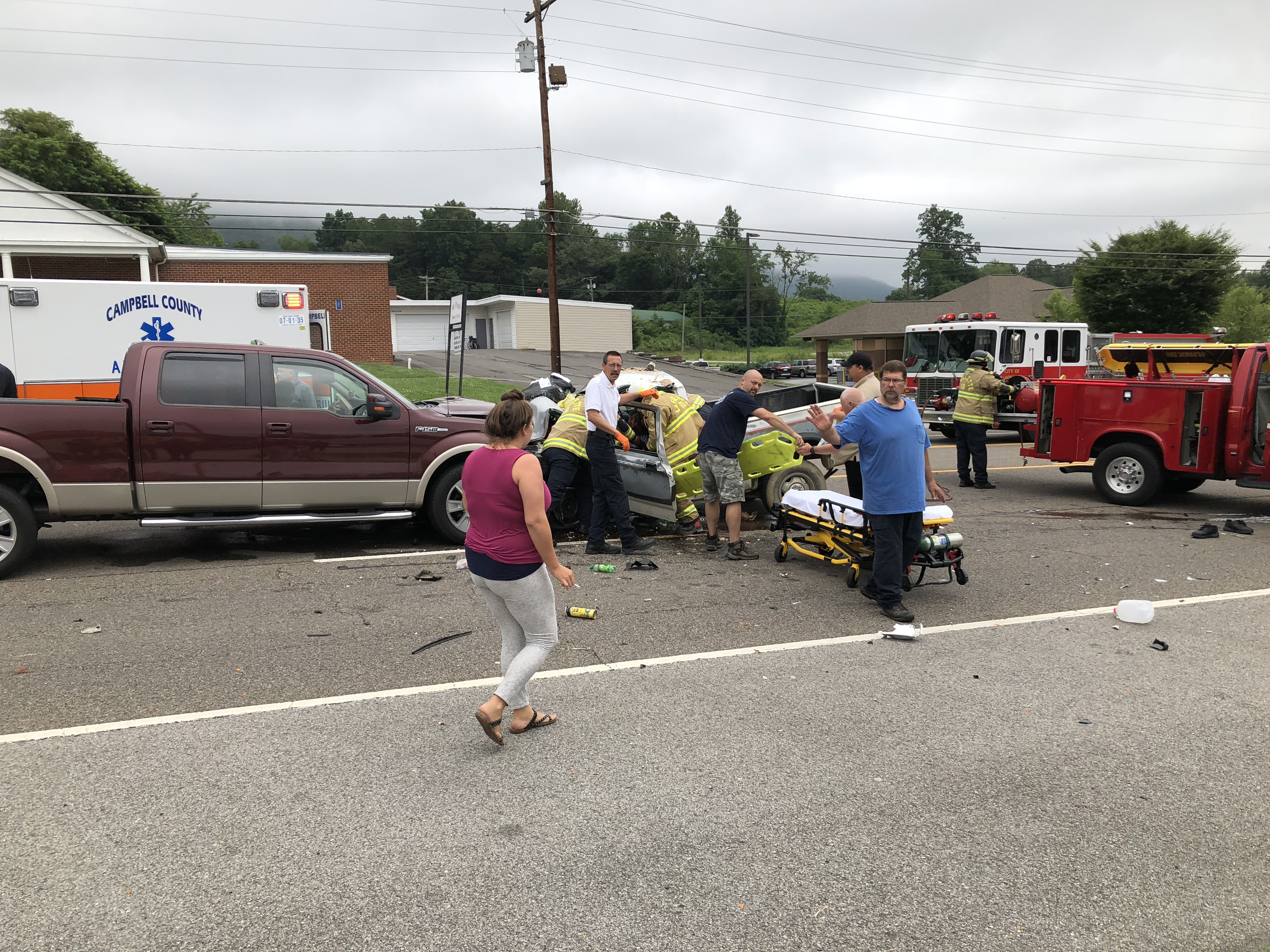 There was a third vehicle involved. The driver of that car, a Ford Taurus, was not injured though the back bumper of his car was ripped loose.  He tells WLAF NEWS that the Ford was traveling toward Middlesboro while the Dodge was La Follette-bound.  He said the Dodge was in the passing lane and then all of a sudden veered into the oncoming passing lane and hit the Ford.