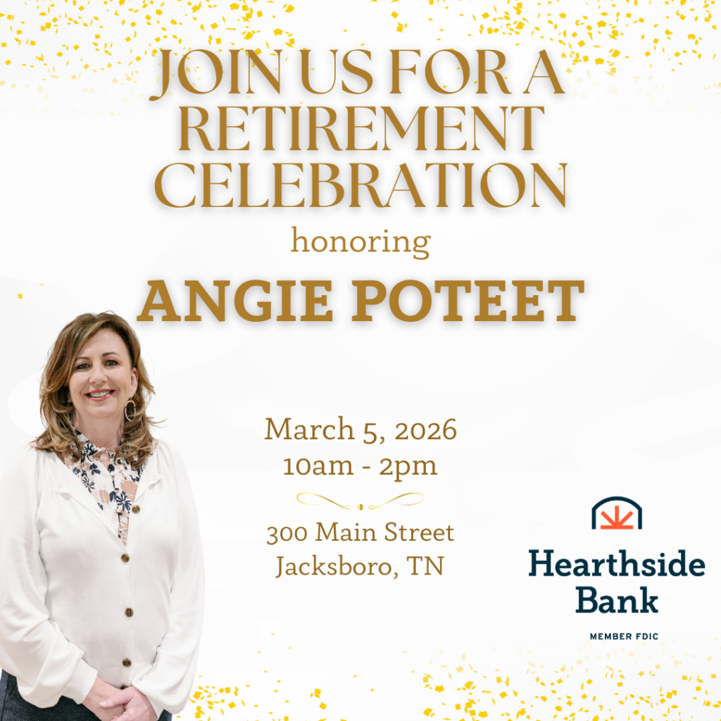 JACKSBORO, TN (SPECIAL TO WLAF)- After 23 years of serving customers and her community, Angie Poteet, Senior Vice President and Relationship Banker at Hearthside Bank’s Jacksboro branch, is retiring.