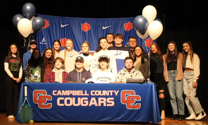 JACKSBORO, TN (WLAF) – Campbell High Tennis Coach Josh Parker calls Garrett Medley “the most complete student.” Parker adds that the multi-sport player does everything so well. Medley, “G” as he’s called, signed scholarship papers at LMU on Thursday morning as upwards of 50 family, friends, teammates, coaches and others were on hand in the Campbell County High School Auditorium.