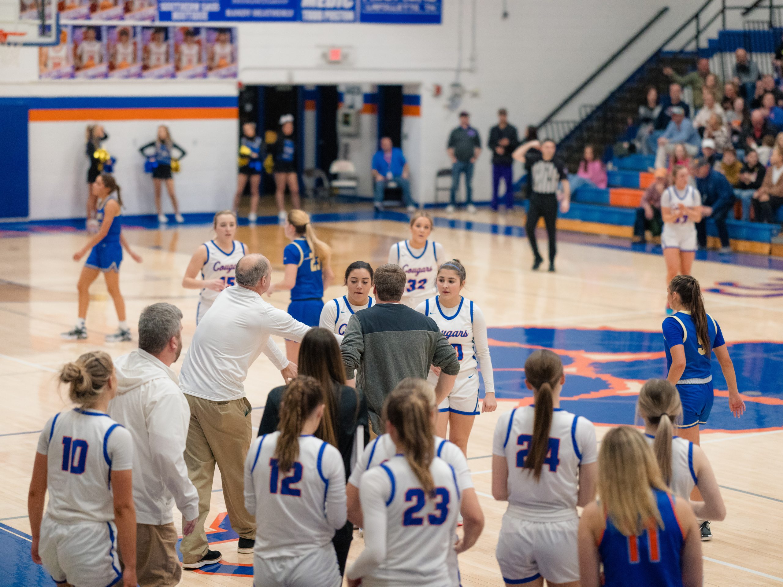 TOP PHOTO: Lady Cougars come off the floor after Karns called a timeout during last Friday’s game. (PHOTO COURTESY OF EMMY STANFILL (INSTAGRAM @shotssbyyem)