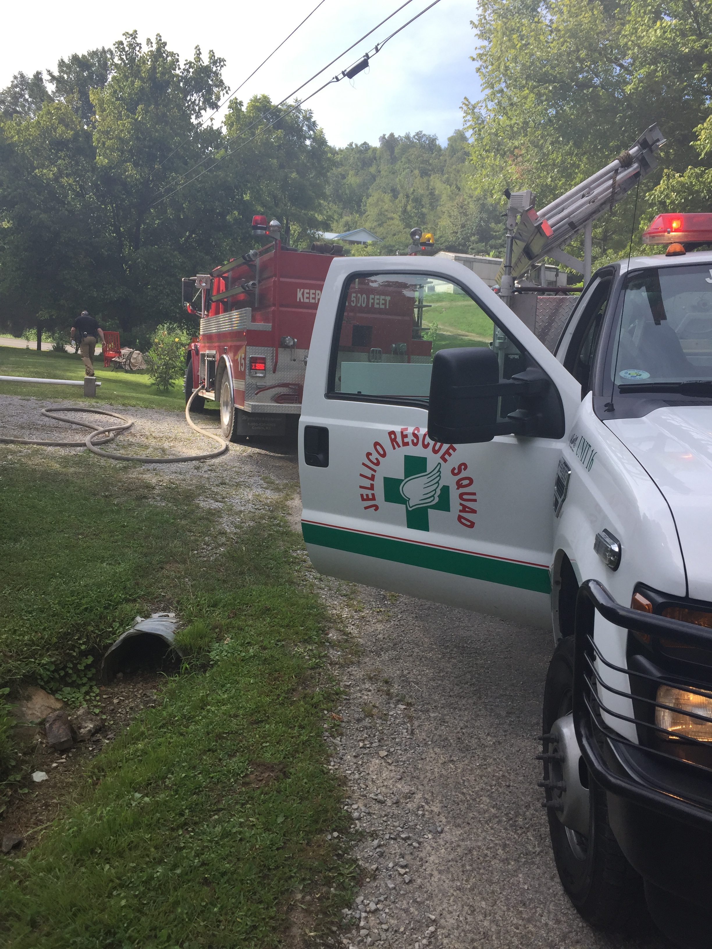 JELLICO, TN (WLAF) – There is a house fire that is still being tended to by members of the Jellico Rescue Squad at this hour. Units remain on the scene on Wooldridge Pike as the Jellico Police Department and Campbell County EMS are offering support. The family made it out safely and so did the dogs as no one was injured. (WLAF NEWS PUBLISHED – 08/11/2019-5:30PM-PHOTOS COURTESY OF JOHN TIPTON)