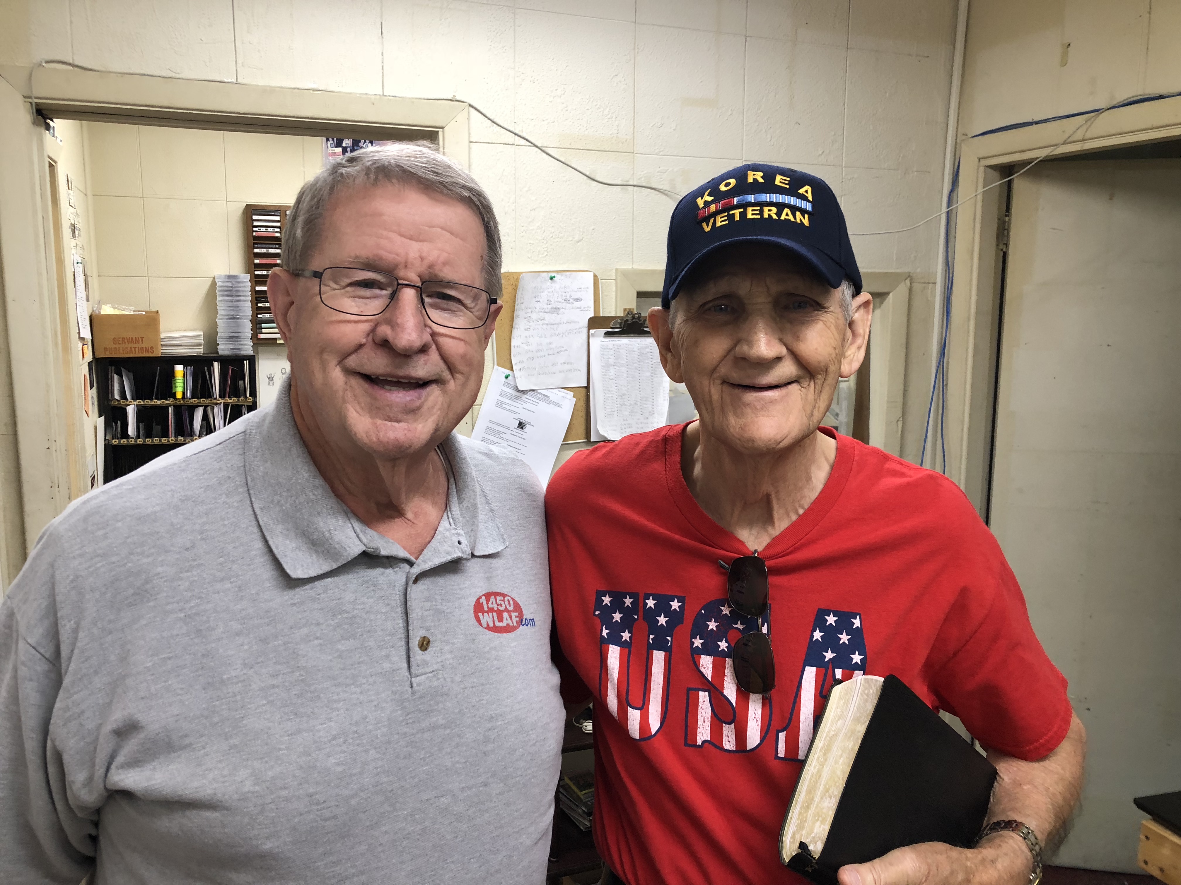 TOP PHOTO: U-S Army veterans Big Josh Etter (left) and Rev. Hobert McCreary (right) pause for a photo at WLAF on Monday. Fellow Korean War veteran Poe Bostic, a Marine, caught up with McCreary at the ceremony. Sadly, Bostic passed away in August. CLICK HERE to read Bostic’s story.