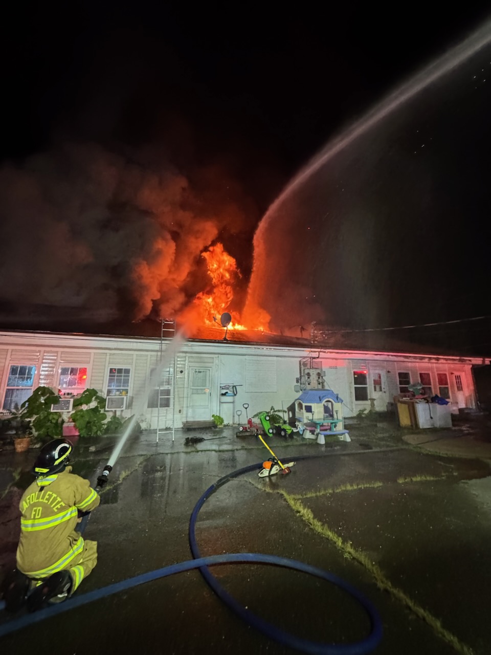 There are still some hot spots on the roof area that firefighters could not safely access. However, the fire is contained to the building and will only smolder.