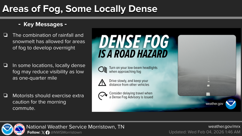 LAFOLLETTE, TN (WLAF)- Dense fog lands on your windshield this morning. A little extra travel time will come in handy as visibility is limited in many parts of Campbell County and the region.