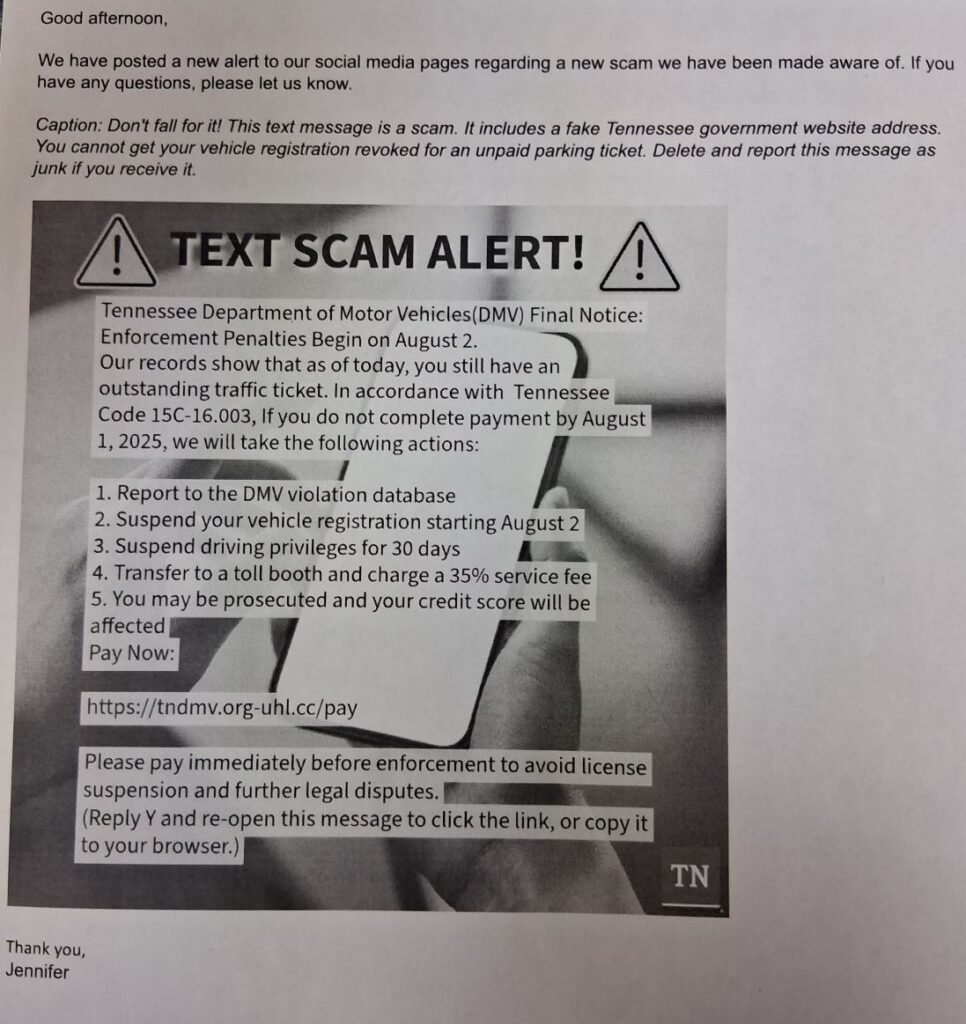 JACKSBORO, TN (WLAF)- “Folks are getting mighty good at making these scams look like the real thing. They’re even using the Tennessee symbol,” said Campbell County Clerk Todd Nance. Even Nance has been sent the bogus notice.