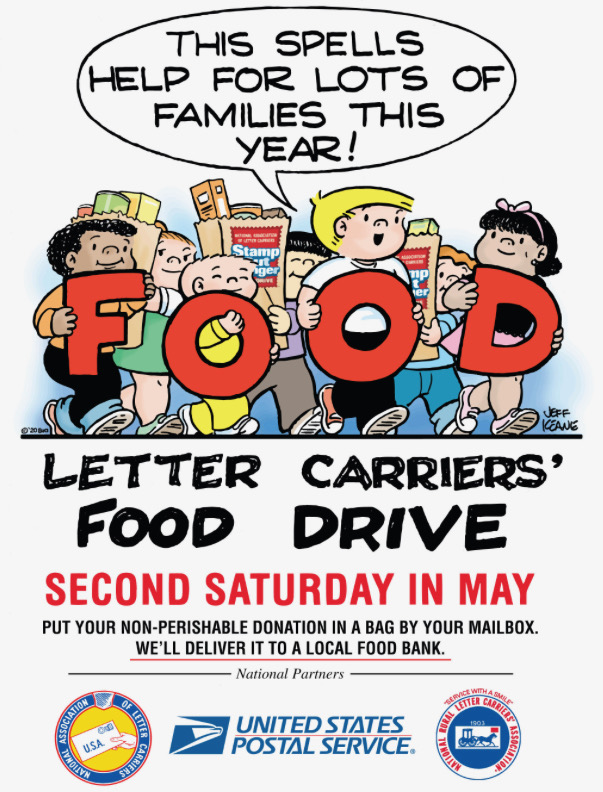 “The Second Saturday in May” food drive is this weekend both at your home mailbox and at the post office. “We’re not only picking up non-perishable food donations left in a bag by your mailbox, but we’re also accepting them at the post office from 8am until noon on Saturday,” said DeWayne “Mailman” Kitts.