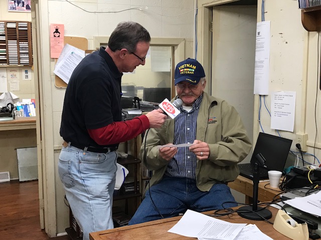 Janice Lykins of Caryville won $500 in cash from WLAF in the “World’s Smallest Christmas Stocking Give-a-way.”TOP PHOTO: La Follette Mayor Mike Stanfield drew Lykins’ name from the bucket as WLAF’s Jim Freeman looked on Thursday in the WLAF Studio.Â