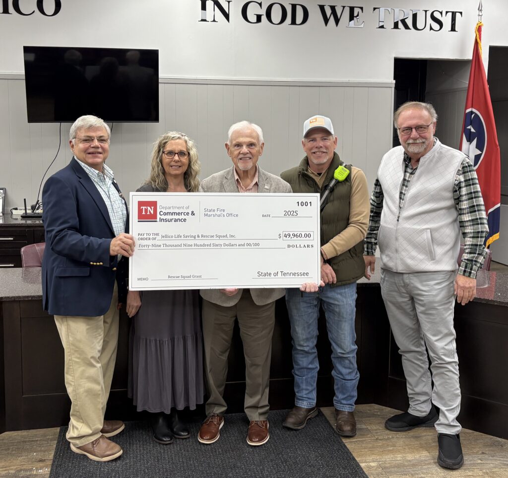 JELLICO, TN (WLAF)- City, county and state leaders gathered at Jellico City Hall on Friday morning for a check presentation to the Jellico Fire Department and Jellico Rescue Squad. “Anytime we can get a grant to help the city is exciting,” said Jellico Mayor Sandy Terry.