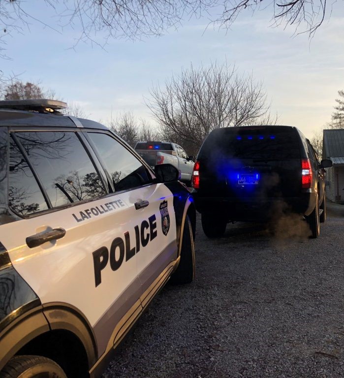 TOP PHOTO: LaFollette Police on a drug raid in January.