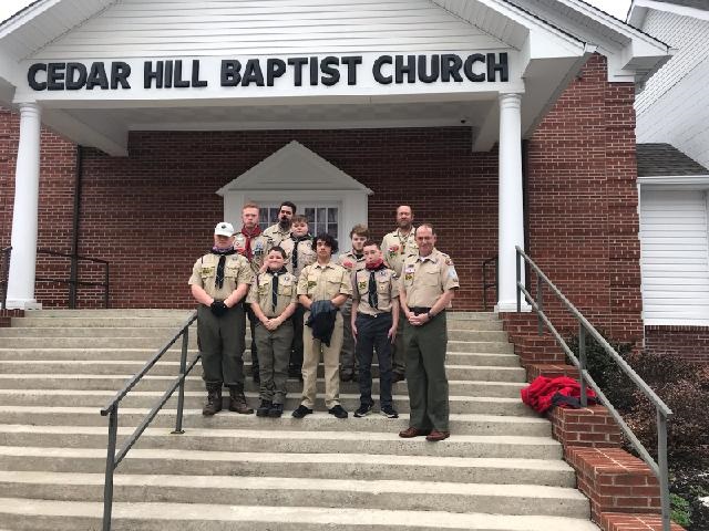 TOP PHOTO: LaFollette Scout Troop 310 celebrated Scout Sunday on Feb. 14, thanking their sponsor: Cedar Hill Baptist Church.