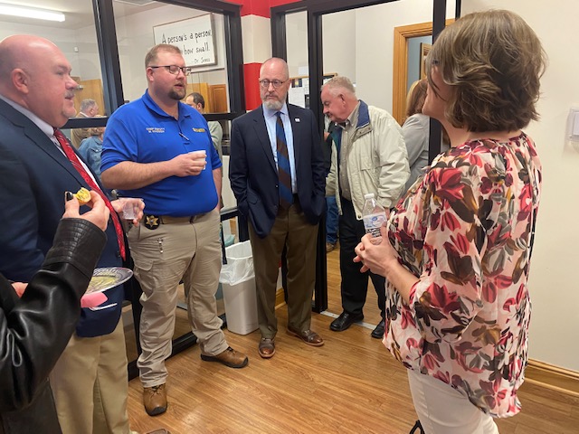 TOP PHOTO: Several people attended Thursday’s Coffee Connection hosted by the Campbell County Children’s Center. (Left to right) Sheriff Robbie Goins, Chief Deputy Matt Wasson, Children’s Center Board of Directors Member Mark Cain, CEO of La Follette Medical Center along with active community volunteer Larry Tanis and Tracie Davis, Executive Director of the Campbell County Children’s Center.