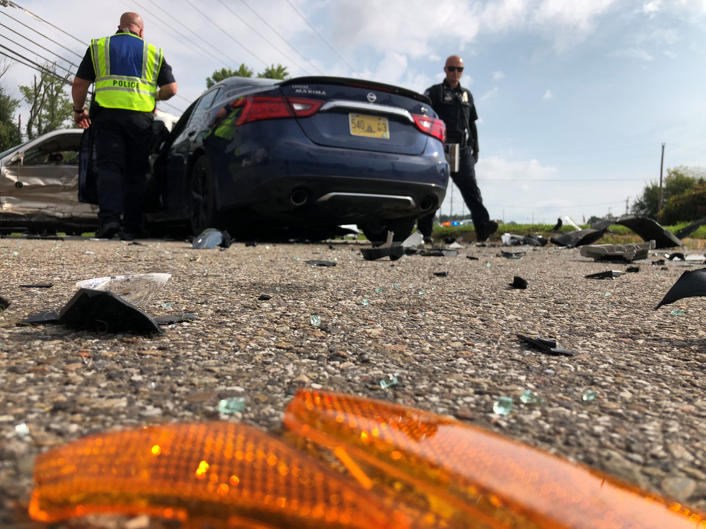 TOP PHOTO: Det.-Sgt. Matthew Forsyth (left) and Officer Zach Daugherty, both with La Follette Police, assess the wreck.