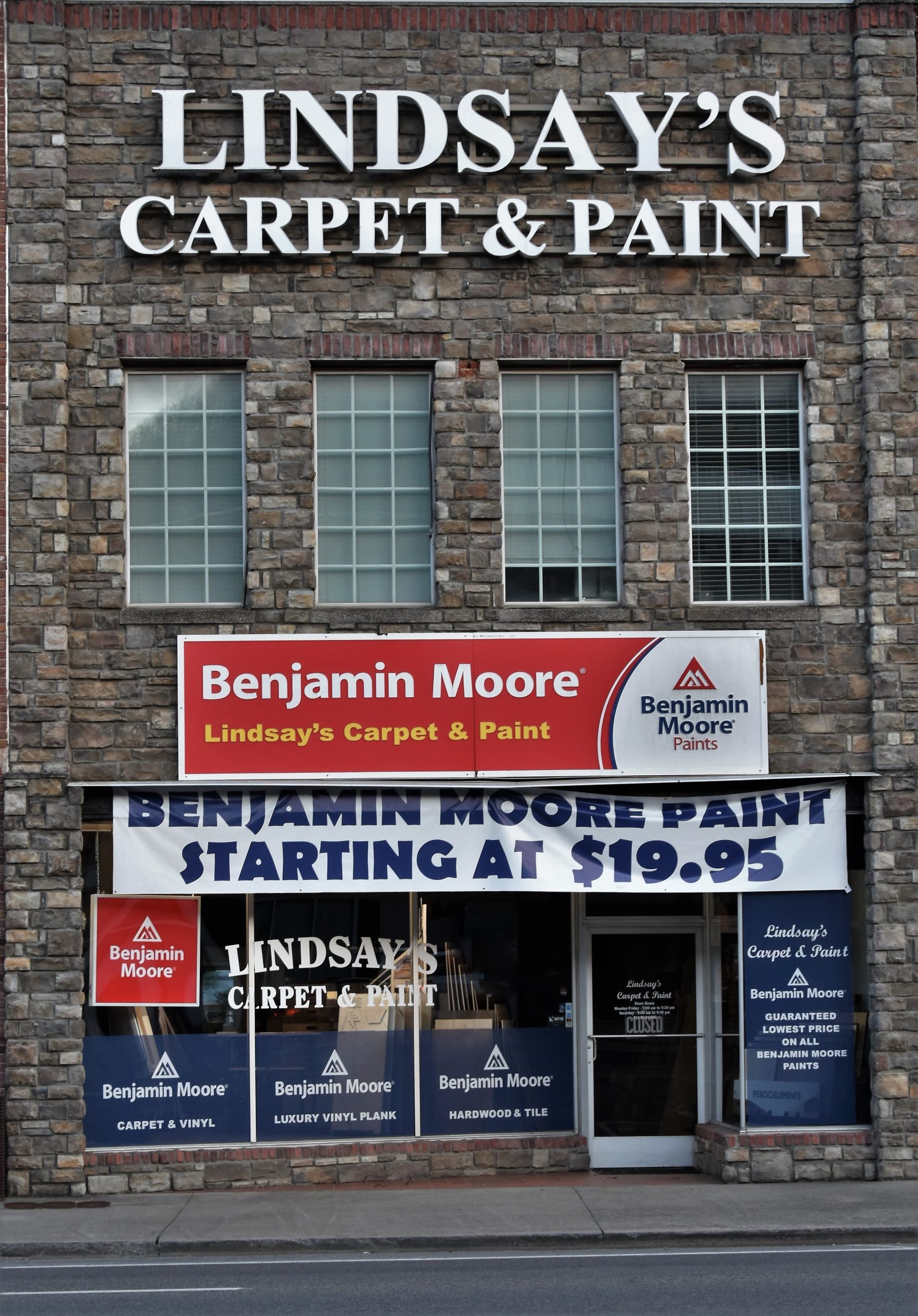 Lindsay’s Carpet & Paint Center is in the heart of town between stop lights seven and eight. Monday through Friday hours are from 7am until 5:30pm and the hours on Saturday are from 8am to 4:30pm.