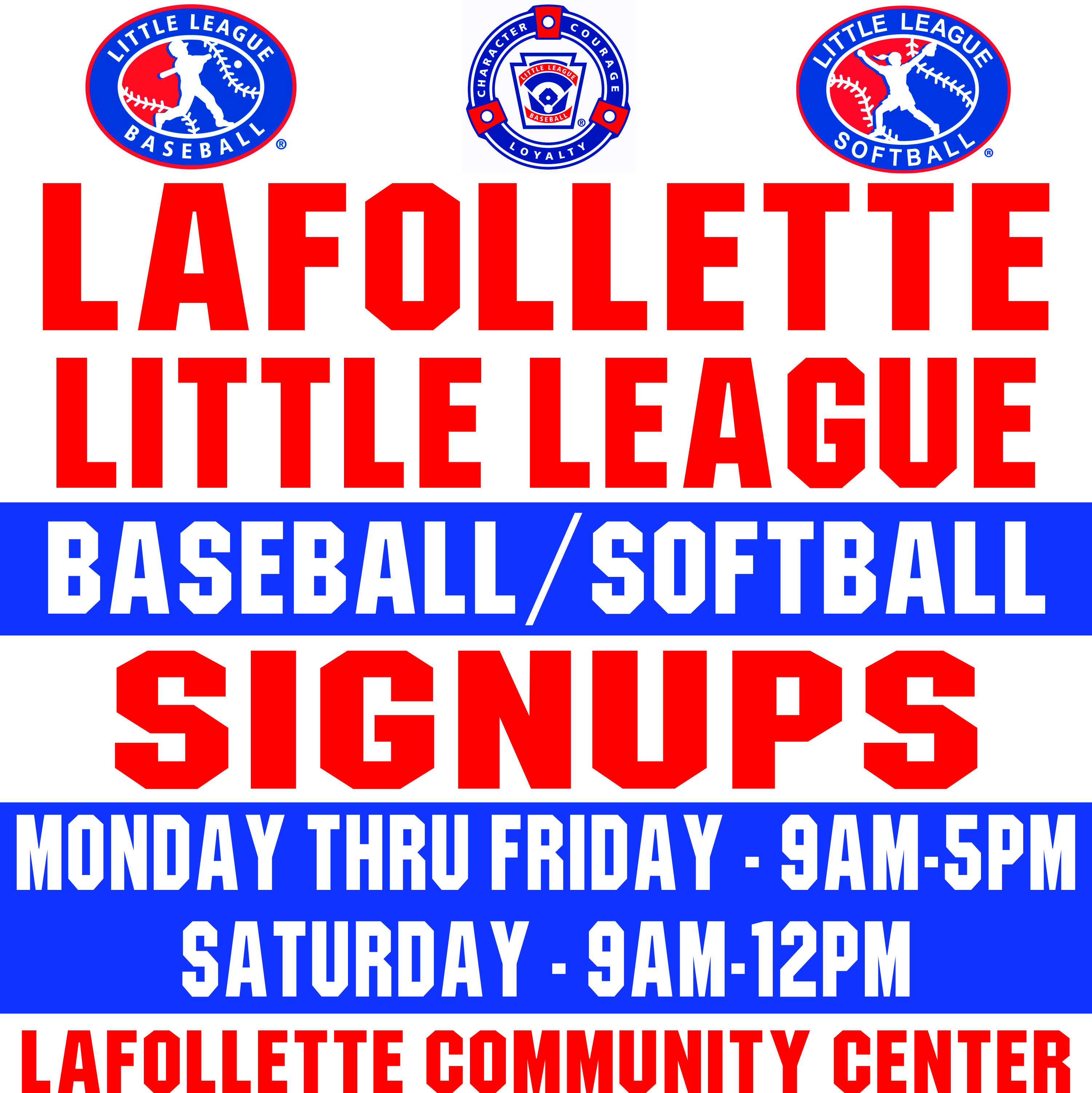 LAFOLLETTE, TN (WLAF) – It’s been a while since Little League Baseball has been played in La Follette. Now it returns along with Little League Softball.  Sign-ups are now taking place at the West La Follette Community/Recreation Center on West Beech Street. The times to register to play are Monday through Friday from 9 am until 5 pm and Saturdays between 9 am and noon. (WLAF NEWS PUBLISHED – 02/05/2020-6AM)