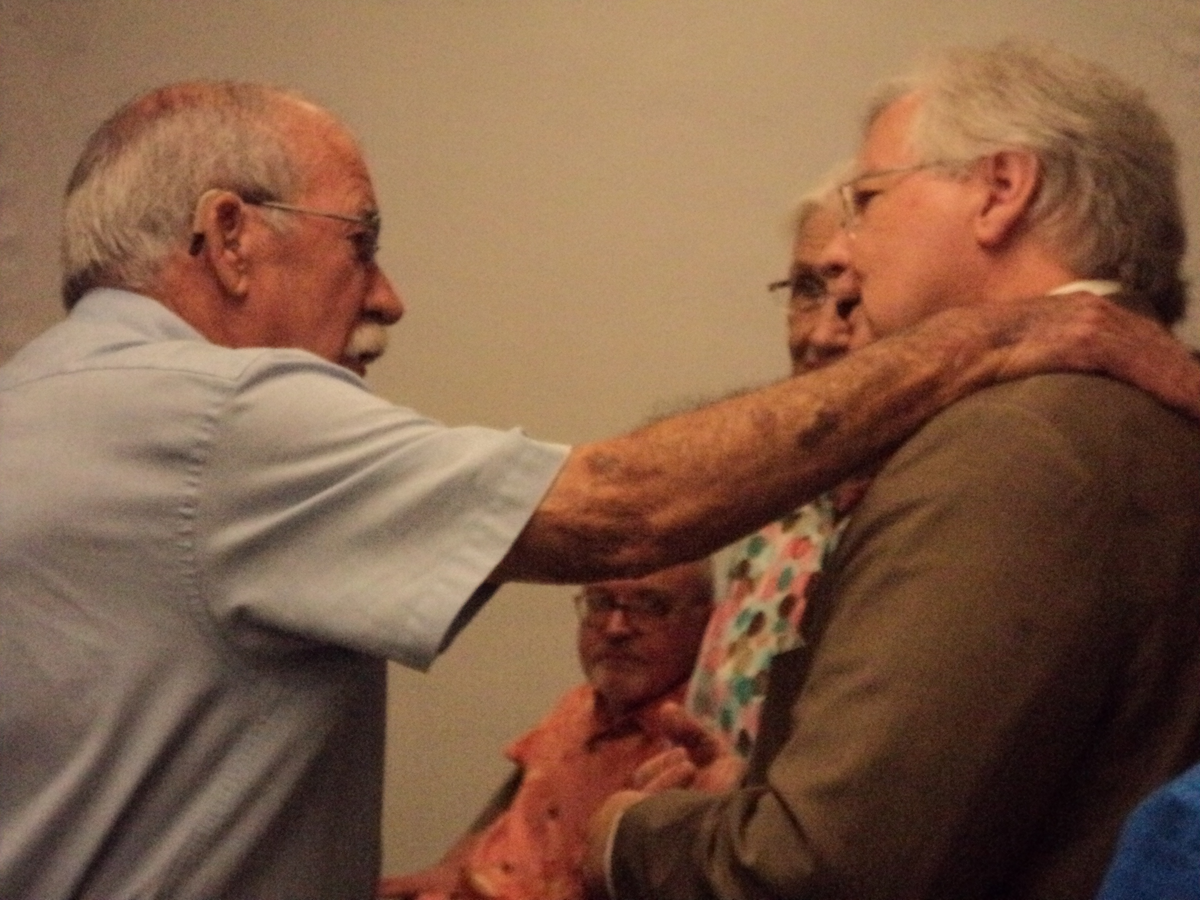 TOP PHOTO:Â Harry Burden (L) visits with Paul Phillips.