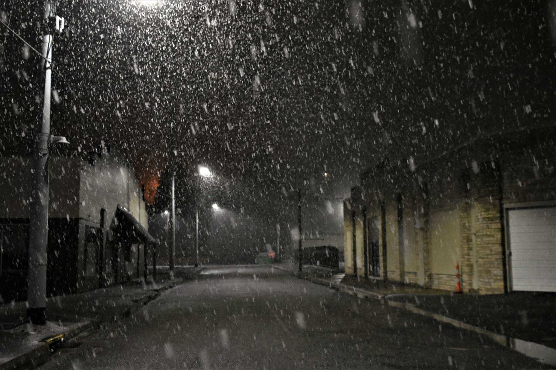 TOP PHOTO: Heavy snow falling on Mill Street about 6pm Sunday.