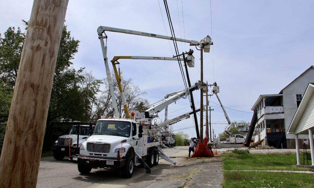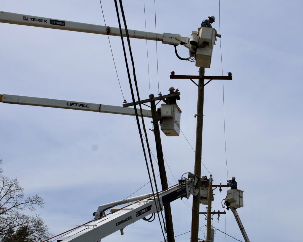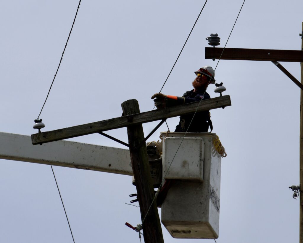 Brandon Shown and fellow LUB crew members spent time on Wednesday replacing power poles (PHOTOS COURTESY OF WLAF’S MATTHEW MOORE).