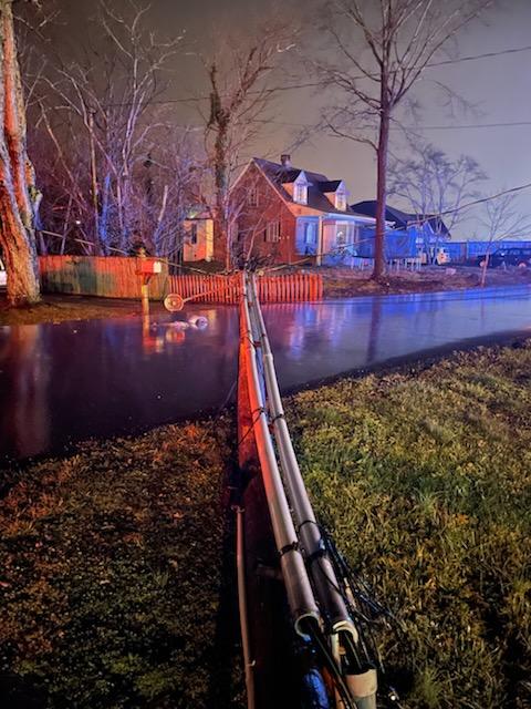 Strong wind gusts blew a large tree limb onto a main power pole’s lines knocking the pole over around 7:30 Thursday night behind La Follette Fire Station Number 2 on Old Jacksboro Highway. (WLAF NEWS PUBLISHED – 02/18/2022-6AM)