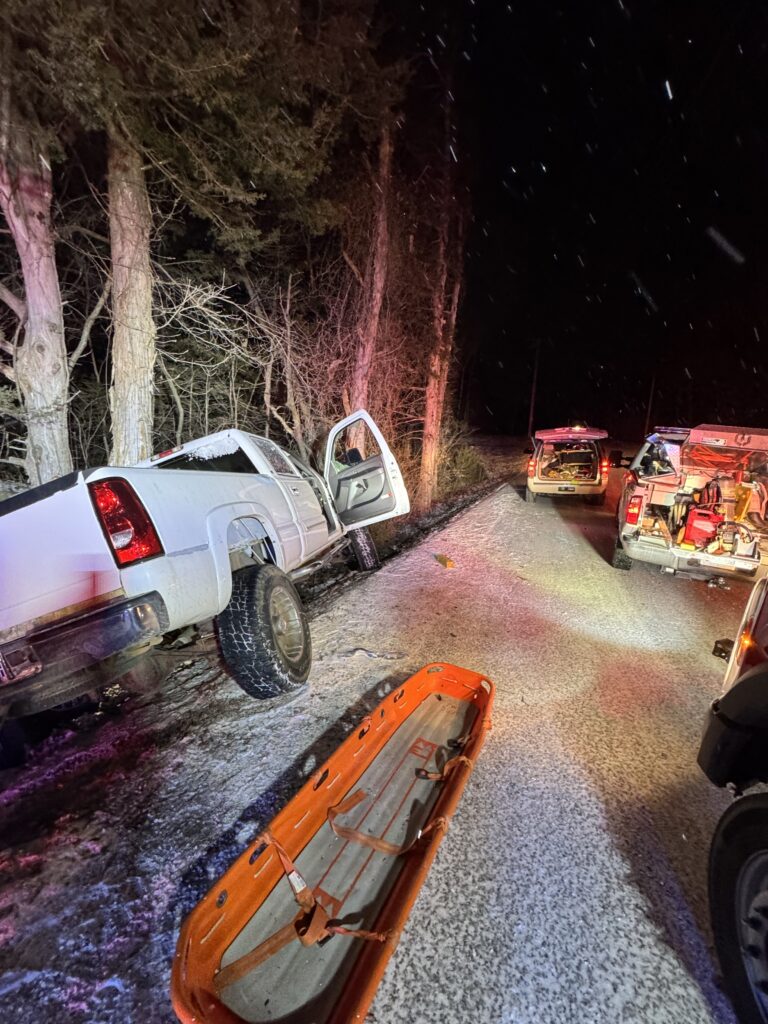 Once on scene, crews found a pick-up truck against a tree on Indian River Boat Dock Road. Crews found the patient severely pinned in the pick-up truck.