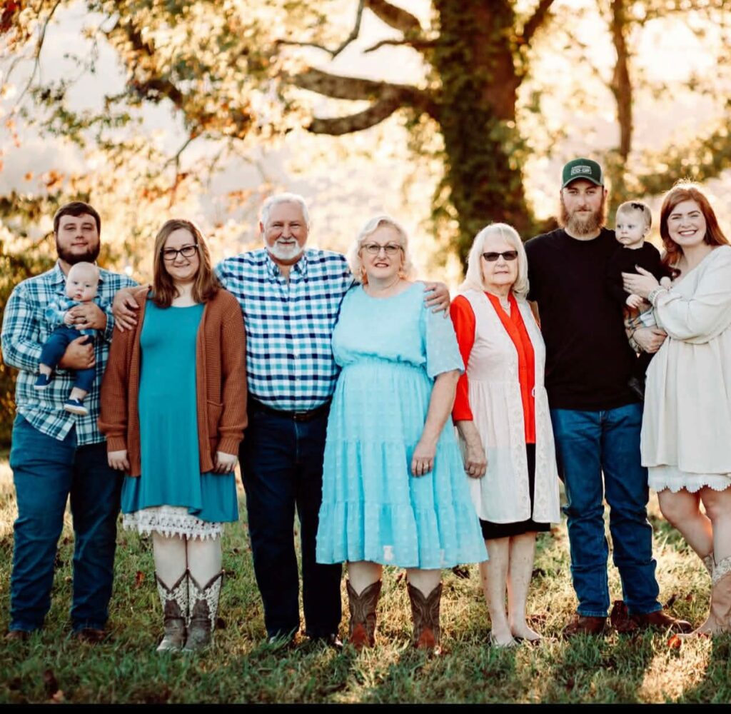 “My two kids were raised on the road, singing and playing music for the Lord. My son is Colton Goins and wife Celia and my grandbaby Harper. My daughter is Kaylee (Goins) Proffitt and husband Paul Proffitt and my grandbabies Hunter and Shyla.”