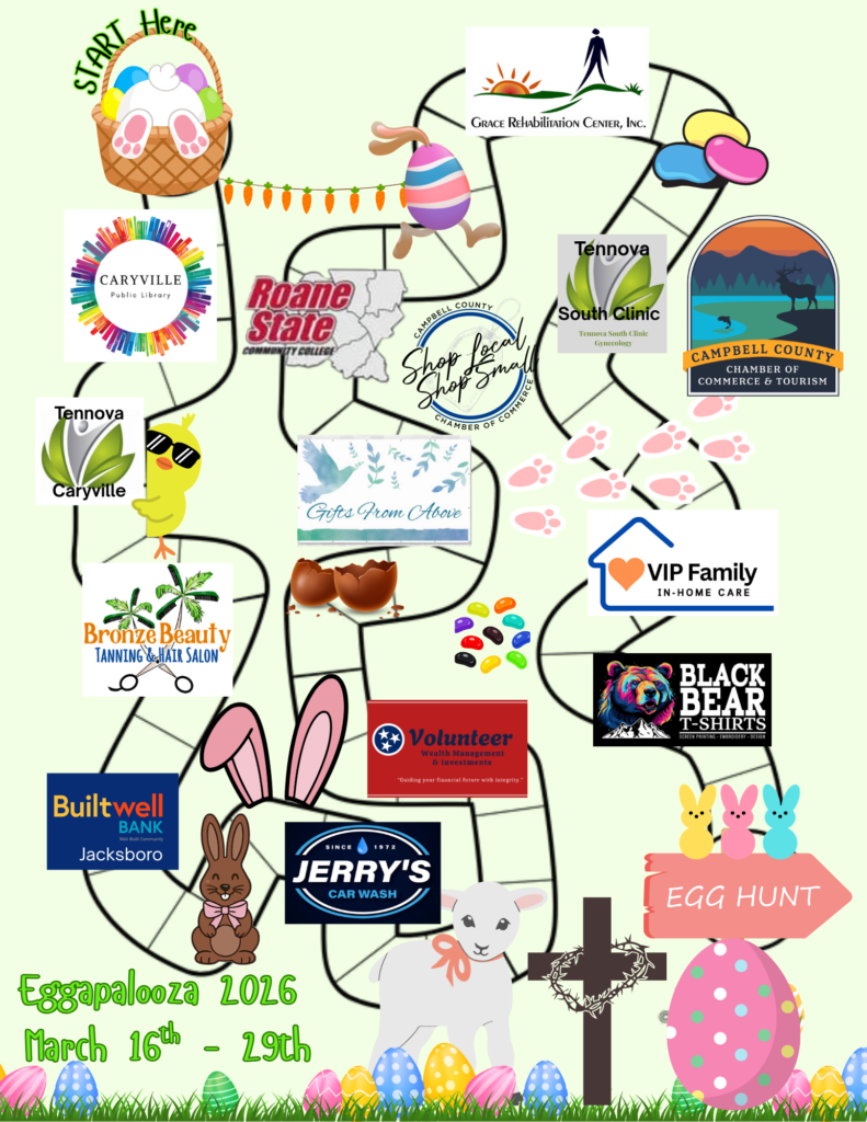 You must turn in your completed map to Postmark La Follette, a participating location on the map or to the Chamber of Commerce at 1016 Main St, Jacksboro, by Tue., March 31, at 4:30pm.