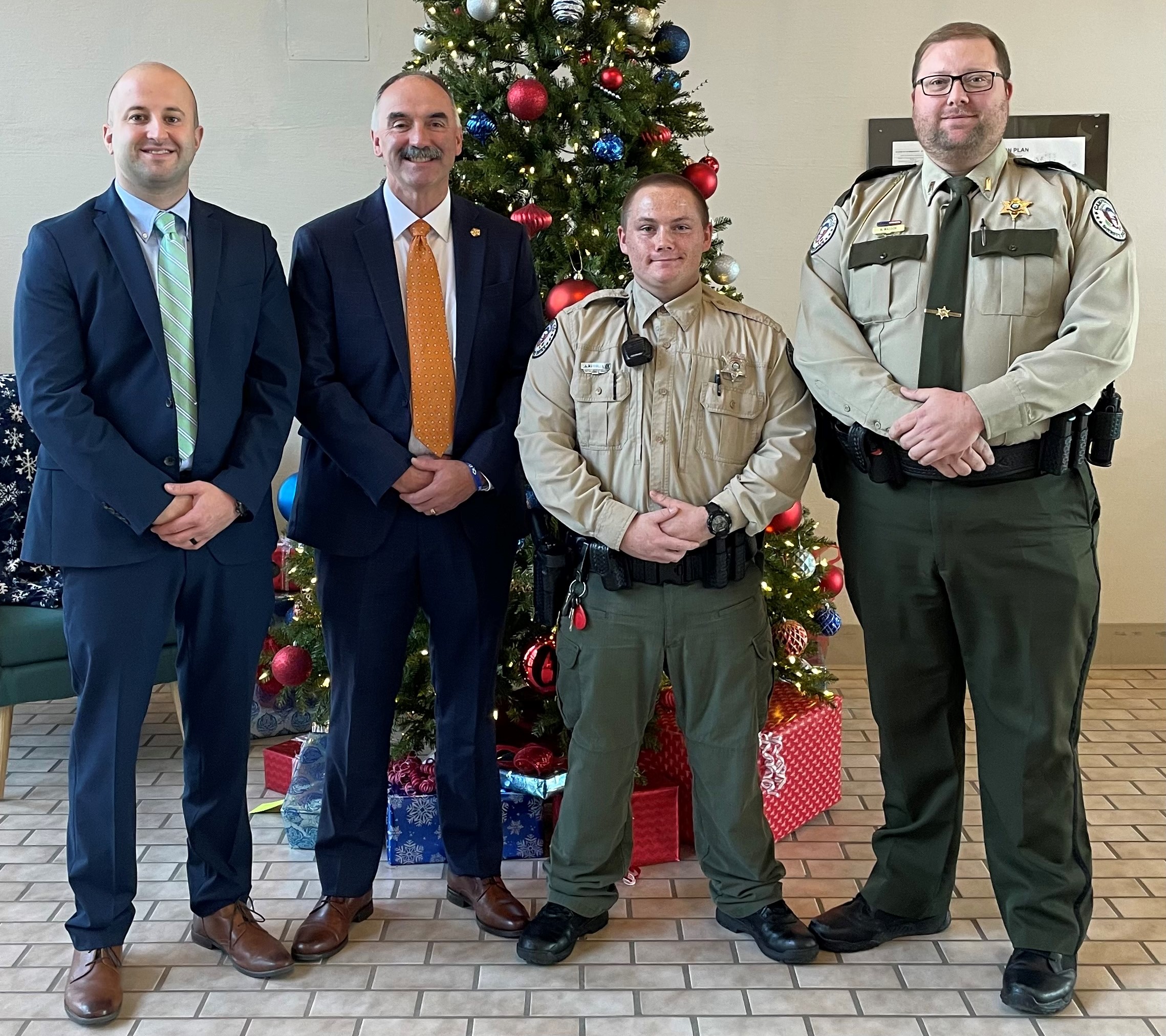 TOP PHOTO: Left to right are Campbell County Captain Cody Chapman, Sheriff Wayne Barton, Deputy Joseph McCulley and Lieutenant Matt Wasson. The occasion is McCulley’s successful completion of the Regional Law Enforcement Training Academy at Walter State Community College.