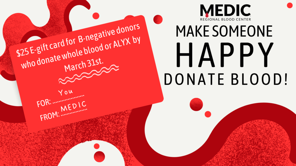 WHY: Blood product demand has been high this week, and MEDIC is experiencing low inventory of several blood types.