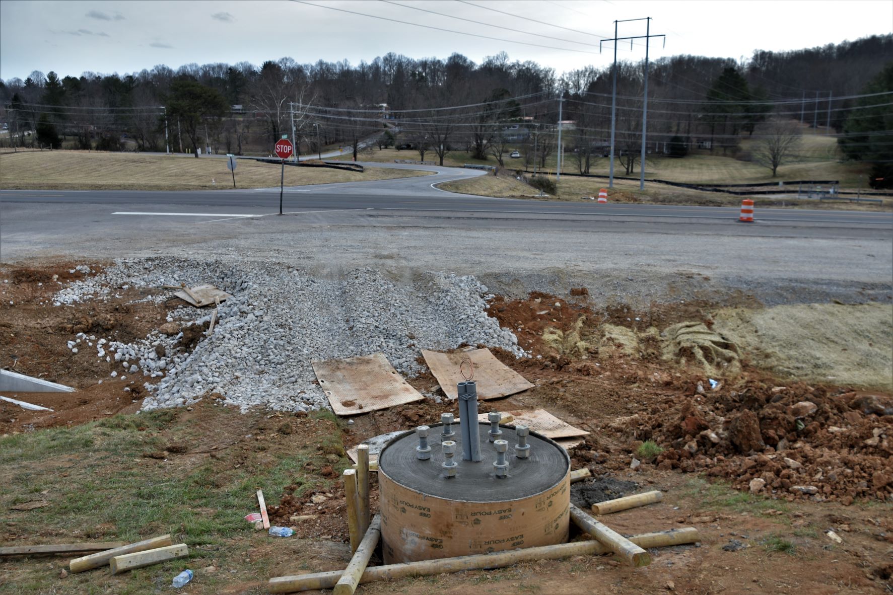 TOP PHOTO: One of the anchor bases for the new traffic signal at Hwy 63/Stiner Hwy and the Davis Chapel/Wildwood Circle turn off looking at Davis Chapel Road.