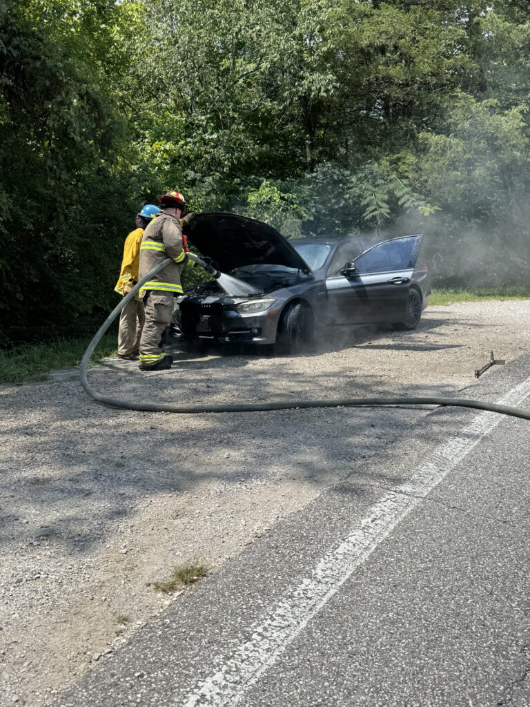 A gray, late model, BMW was on fire along Demory Road near the west side of the White Bridge when units arrived.