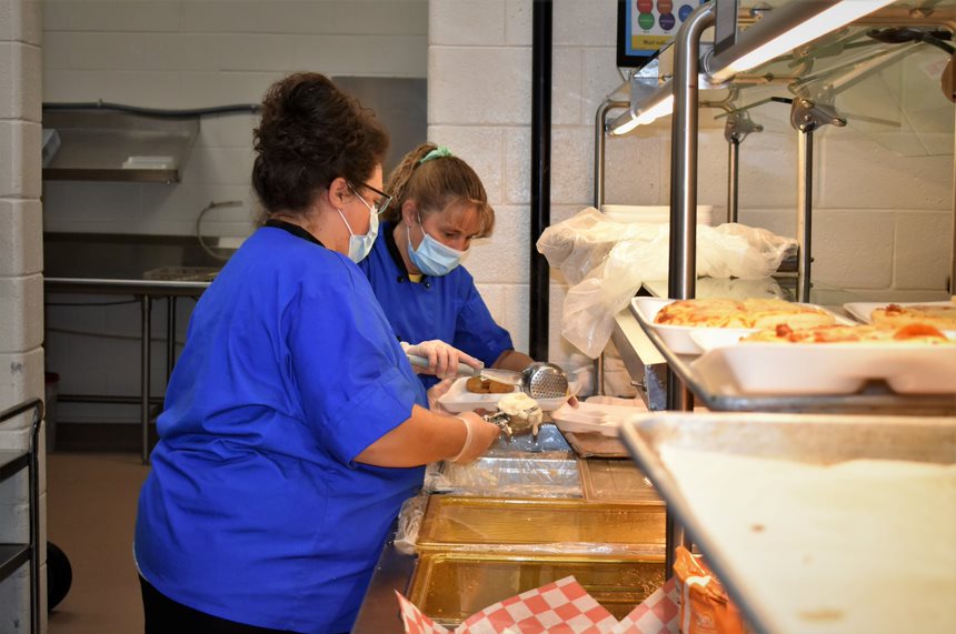 TOP PHOTO: Vyreda Chapman (back) and Margie Campbell are in action serving lunch on Tuesday at CCHS.