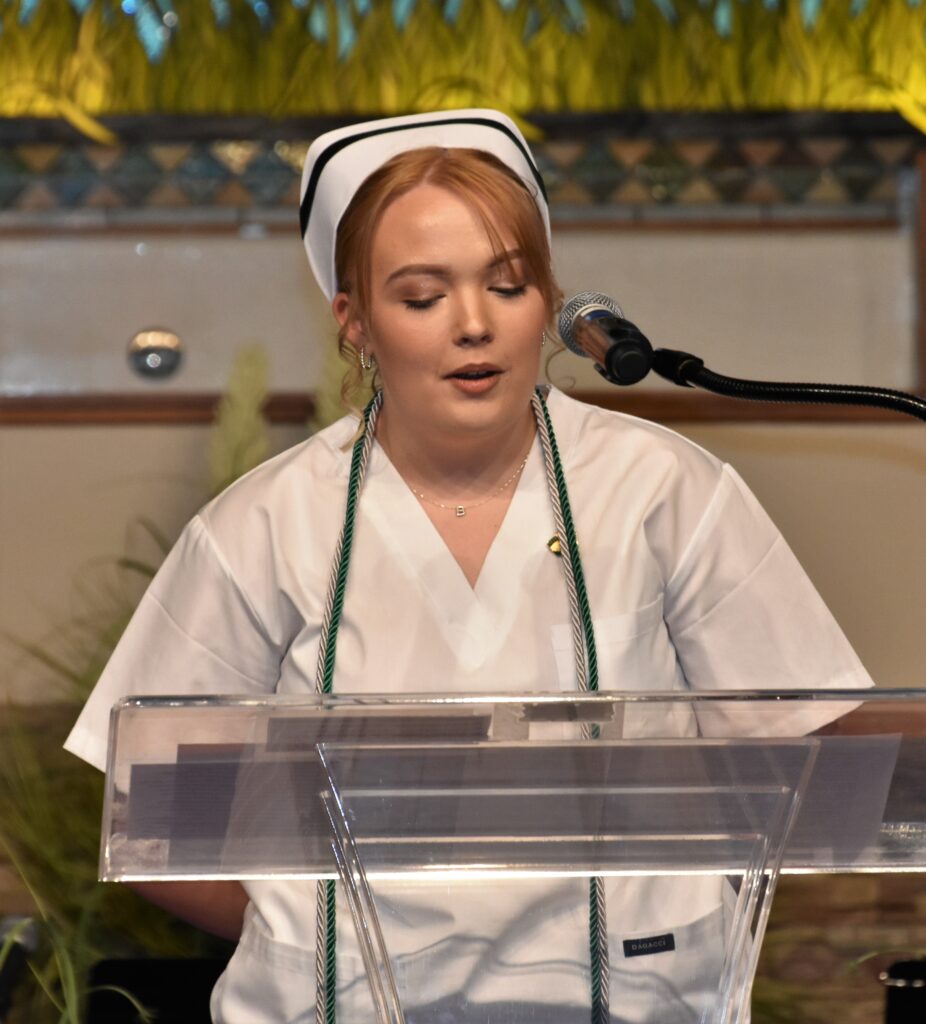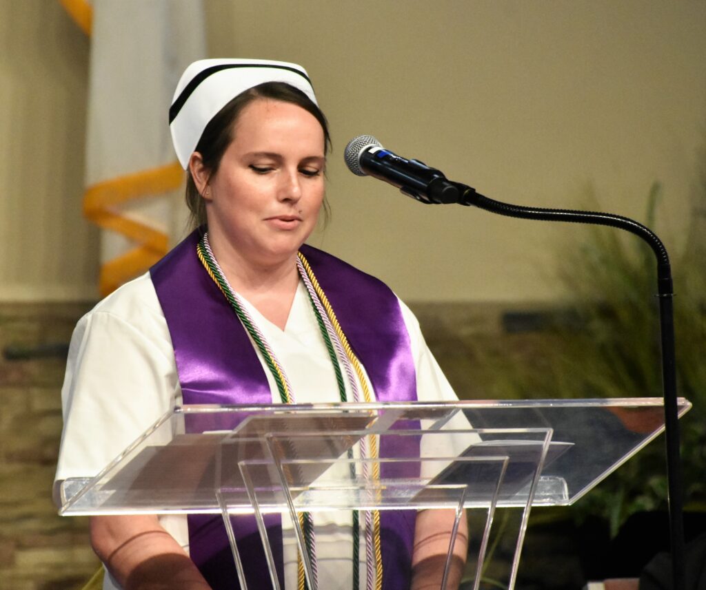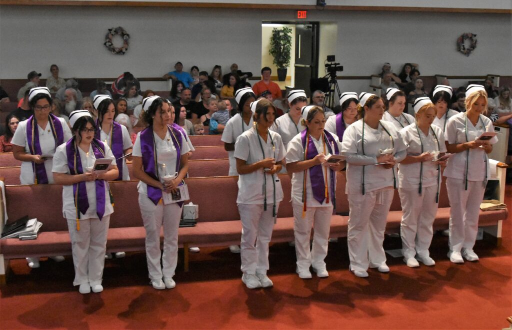 Nursing school graduates take their oath, Nurses Pledge, on Friday evening at the La Follette Church of God.