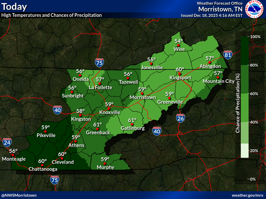 Strong gusty winds up to 55 mph will be possible in the East Tennessee mountains and immediate foothills Thursday afternoon into Thursday night. There will be breezy winds in Campbell County and here on the northern Cumberland Plateau approaching 40 mph gusts. (WLAF NEWS PUBLISHED-12/18/2025-6AM-IMAGE AND SOME TEXT COURTESY OF NWS MORRISTOWN)