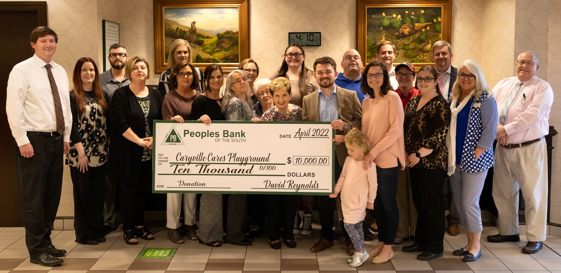 TOP PHOTO: Peoples Bank of the South made a donation to the Caryville Cares Playground project earlier this week.