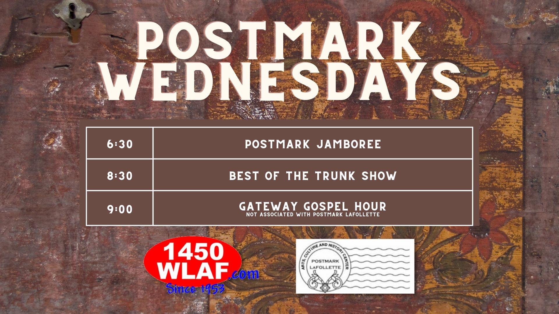 Tonight, and every Wednesday, from 6:30pm to 8:30pm, WLAF will air the February edition of the Postmark Jamboree on WLAF-TV 12 and listen to it on WLAF FM 100.9 / AM 1450.