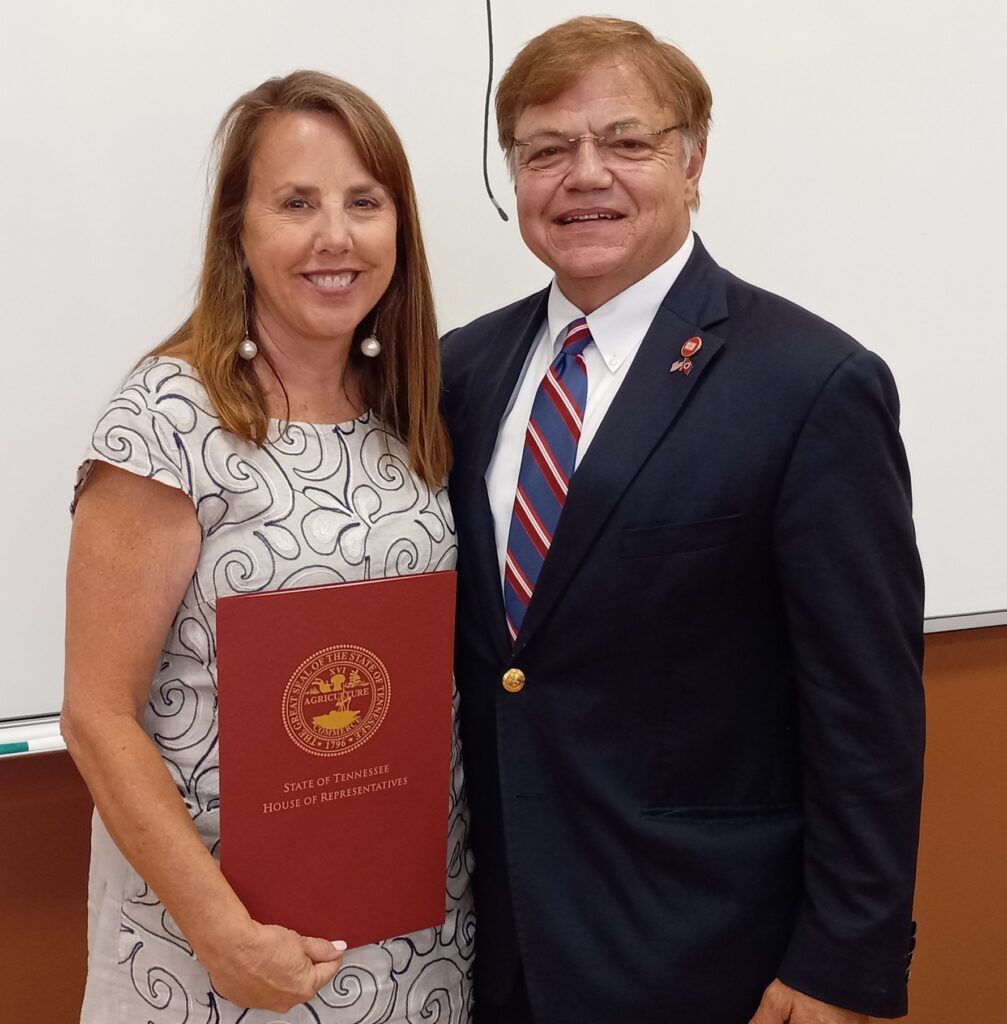 The scouts are equally excited to honor Ms. Tracy Powers as the 7th recipient of the Elbert K. Fretwell Award for exceptional service to education. Tracy Adkins Powers, a Campbell County native, is the daughter of William and Fleda Adkins. She was raised on a Jacksboro farm with her two brothers and two sisters. Tracy attended both Jacksboro Elementary and Jacksboro Middle before graduating from Campbell County High. She then attended Liberty University and earned a BS degree in Education. She later earned a master’s degree from the University of Tennessee. After college, Tracy married State Representative Dennis Powers. Tracy began her teaching career in Knox County. Later, she returned to Campbell County and taught at Jacksboro Middle School.
