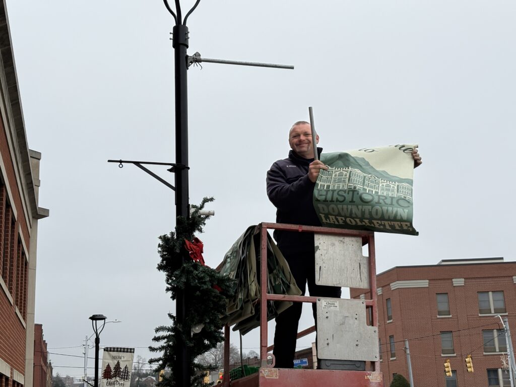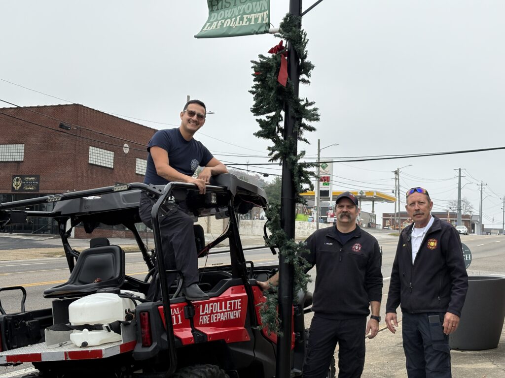 LAFOLLETTE, TN (WLAF)- Early in the week, crews with La Follette Public Works posted Christmas ornaments on utility poles along the four lane. Yesterday, the lights were strung on the City’s big Christmas Tree. Banners are coming down being replaced by Christmas Banners and Garland.