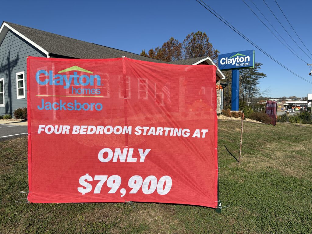 Clayton Homes is at 110 North Street, next to Jacksboro Middle School, just over from the Walmart. The telephone number is 423.562.4533.