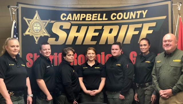TOP PHOTO: The Campbell County Sheriff’s Office has a number of female supervisors among its ranks.(Left to right) Sgt. Catie Wilson, Crpl. Mercedes Williams, Crpl. Kathy Walden, Crpl. Cortney Larson, Crpl. Jessica Thomas, Lt. Mallory Campbell and Sheriff Robbie Goins. Each officer will be profiled in the week’s to come.