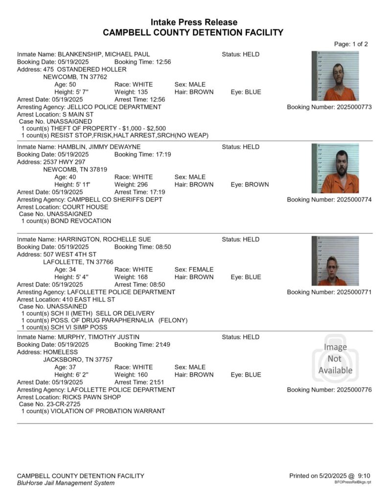 Four Names on Tue., Sept. 30, 2025, B.C. Bonding Arrest Report. B.C. Bonding 423-563-0065.