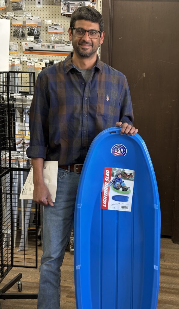 Ojha bought a blue sled for his nine-year old son. “We have a small incline at our home for him to sled, and this will be his first time sledding,” said Ojha.