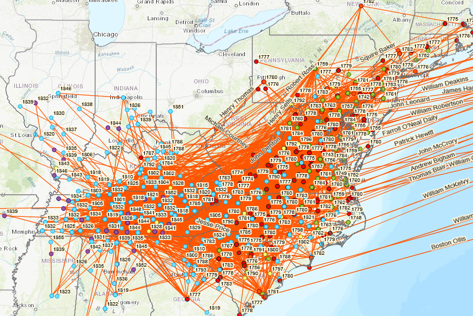 Historians can also use Patriot Paths to learn more about this period in American history. “We learned that an unusually high number of Tennessee pensioners came from Orange County, North Carolina,” said Sherrill. “We don’t yet know why, but Patriot Paths provides the data to help us ask new questions about who came to Tennessee and what motivated them to launch into the wilderness.”