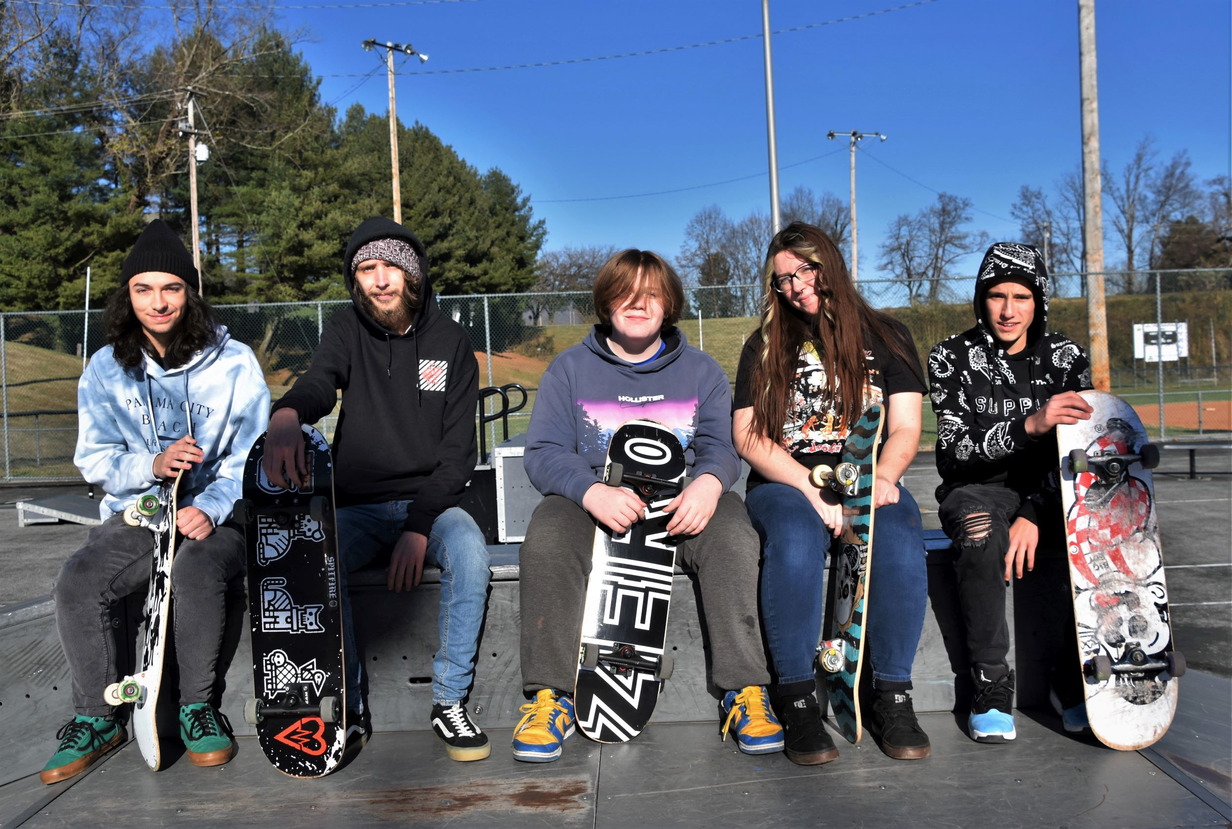 TOP PHOTO: Left to right are Tim Lay, Ruben Malicoat, Michael Walden, Kristin Walden and Blaine Ramirez. Lay’s been skateboarding for about six months while Mailcoat’s been boarding for five years. Walden is the newbie, and Walden’s a two-year boarder. Ramirez has logged seven years.