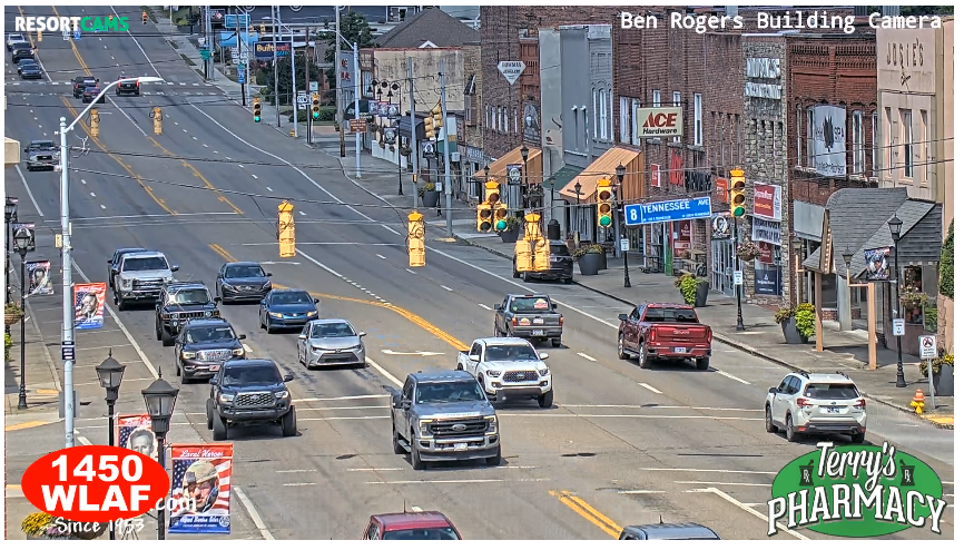 LAFOLLETTE, TN (WLAF)- Thanks to the genius of Todd Overbay and the late Frank Payne, the WLAF-Ben Rogers Building Camera became a reality and is now showing you live looks of Downtown La Follette. Terry’s Pharmacy is the sponsor for the WLAF-Ben Rogers Building Camera.