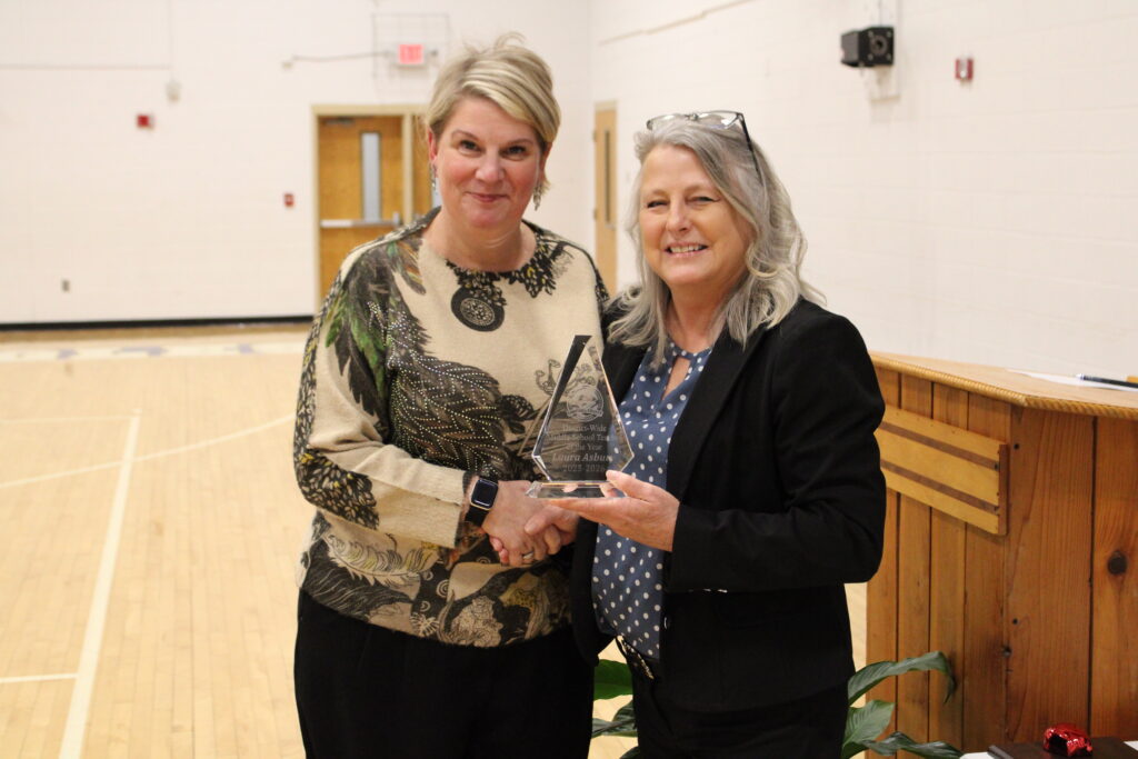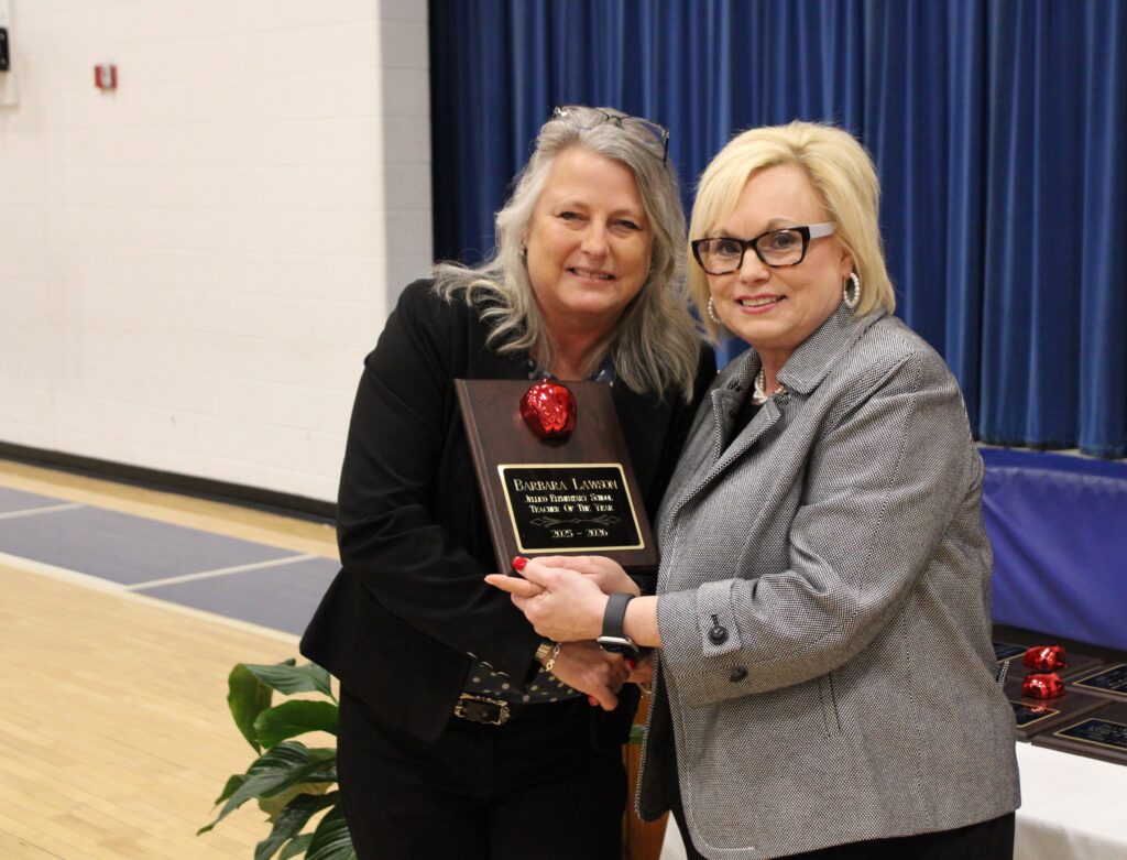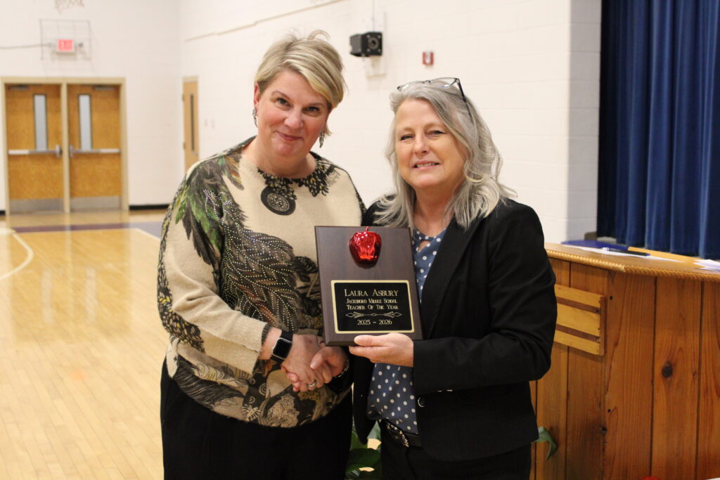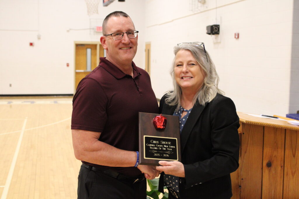 JACKSBORO, TN (WLAF)- Campbell County Interim Director of Schools Nancy Lay presented plaques to all the teachers who were honored on Thursday night at Agee Gym at Jacksboro Middle School. Special thanks to WLAF’s Josh Parker for all of the photos.