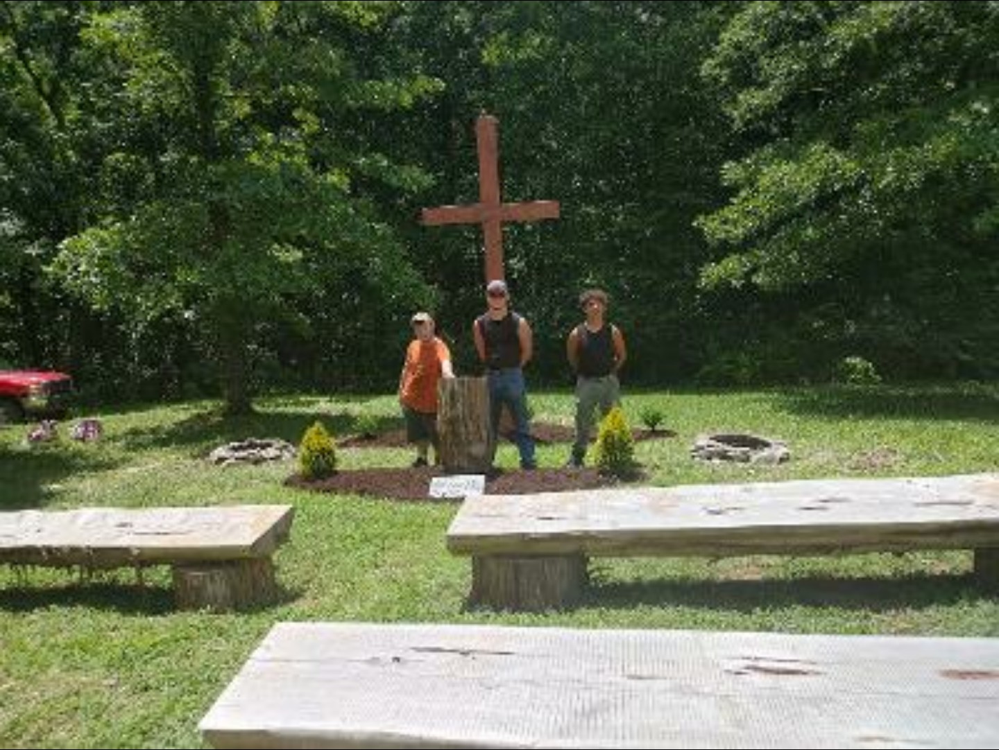He picked it as his Eagle Scout project because he said he wanted to “give back to the church” and to his pastor, the late Ronnie Arnold. “I wanted to show my appreciation to the church and my reverence to God,” Thacker said. The project consisted of a 10 foot tall cross with landscaping, as well as six rough cut cedar benches.  Thacker started the project before Christmas 2019 and finished it in July 2020. “The great thing about the project is it didn’t cost hardly anything. Most of everything was generously donated,” Thacker said.
