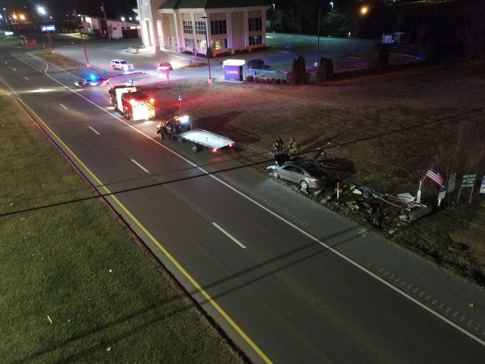 LAFOLLETTE, TN (WLAF) – The west end of La Follette City Limit sign and flower bed are gone. They once sat next to the offices of Community Trust Bank at Wier Woods. Around 9:30 pm Tuesday night, a car plowed through the sign and flower bed.