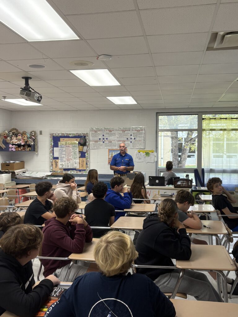 On Tuesday, Sheriff Wayne Barton stopped by Jacksboro Middle School, and he talked with students in Jeanna Newport’s 8th grade Social Studies Class about the many roles within the Campbell County Sheriff’s Office and the different career paths available in law enforcement. “We always enjoy spending time with our local schools and sharing a little about how we serve our community,” said Barton.