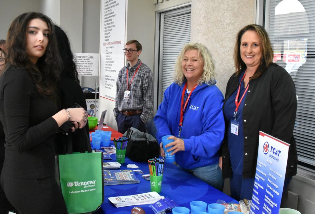 TCAT, one of the sponsors of the Job Fair, was well represented on Tuesday morning at Woodson’s Mall. Behind the tables, left to right, are Derick Marlow. Camilla Gambrel and Jill Browning.
